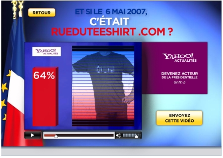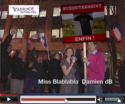J'ai découvert ce matin que Yahoo avait pris l'heureuse initiative de rendre accessible à tous le monde le fantasme d'être présidentiable... rueduteeshirt.com président comme le prouve les photos ci-dessous tirées de la vidéo présentée par le célèbre journaliste Bruno Masure, il se recycle comme il peut le pauvre...