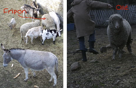 Fripon bien entendu répond depuis toujours à son nom d'abord par des bêlements puis en accourant au trot.