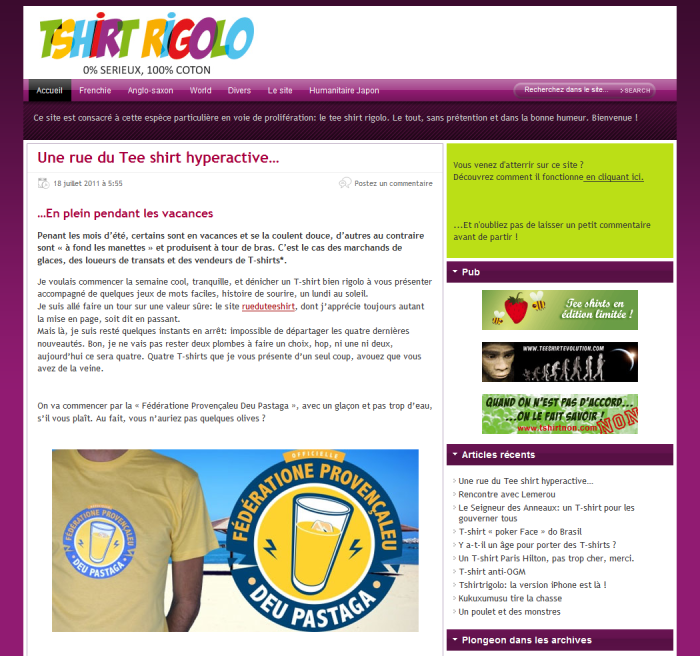 Il s'agit du blog Tshirt rigolo qui vient de pondre un article sur nos 4 dernières sorties avec en plus une interview de Lemerou, ce blog est spécialisé dans le t-shirt humoristique biensûr.